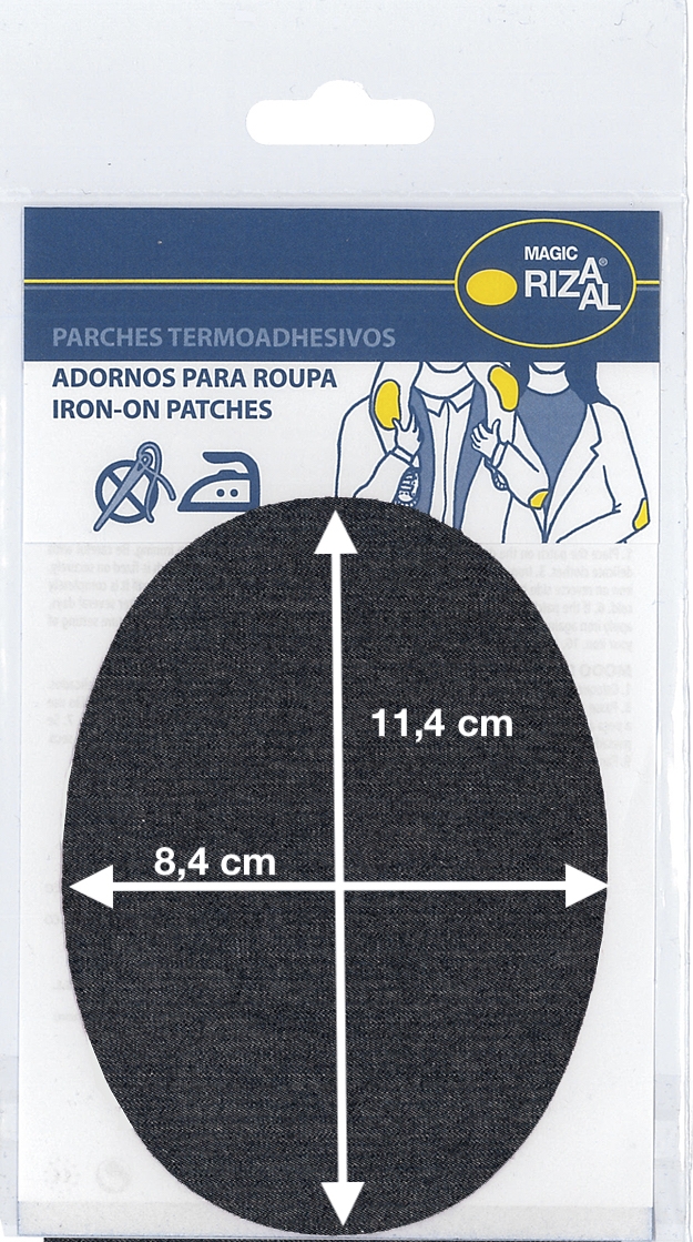 Les patchs comprennent une application thermoadhésive de RIZAAL® à repasser et les instructions d'utilisation dans l'emballage.